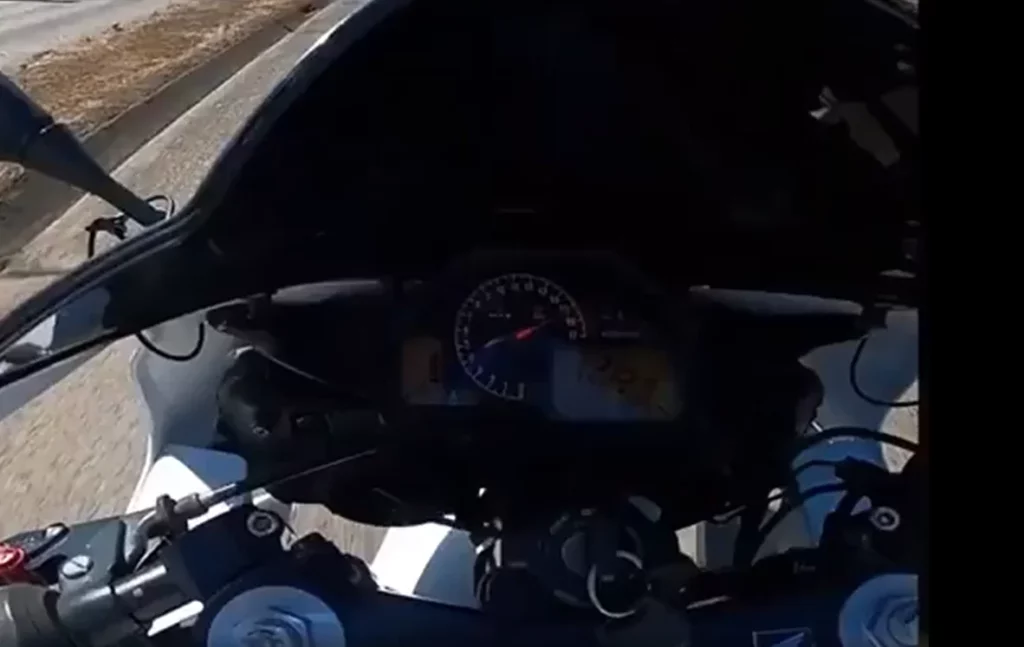 In the clip, the rider goes from speeding down a rural street to picking himself off the pavement in less than 5 seconds. At the start of the clip, it looks like the speedometer reads 126 km/h (~78 mph), as you can see in the photo below. Evidently, that’s not the type of street anyone should be going that fast on. Although we have no way of verifying it, according to one commenter on Reddit this is Highway 99 in Cottage Grove, Oregon, and the speed limit is 35 mph (56 km/h).
