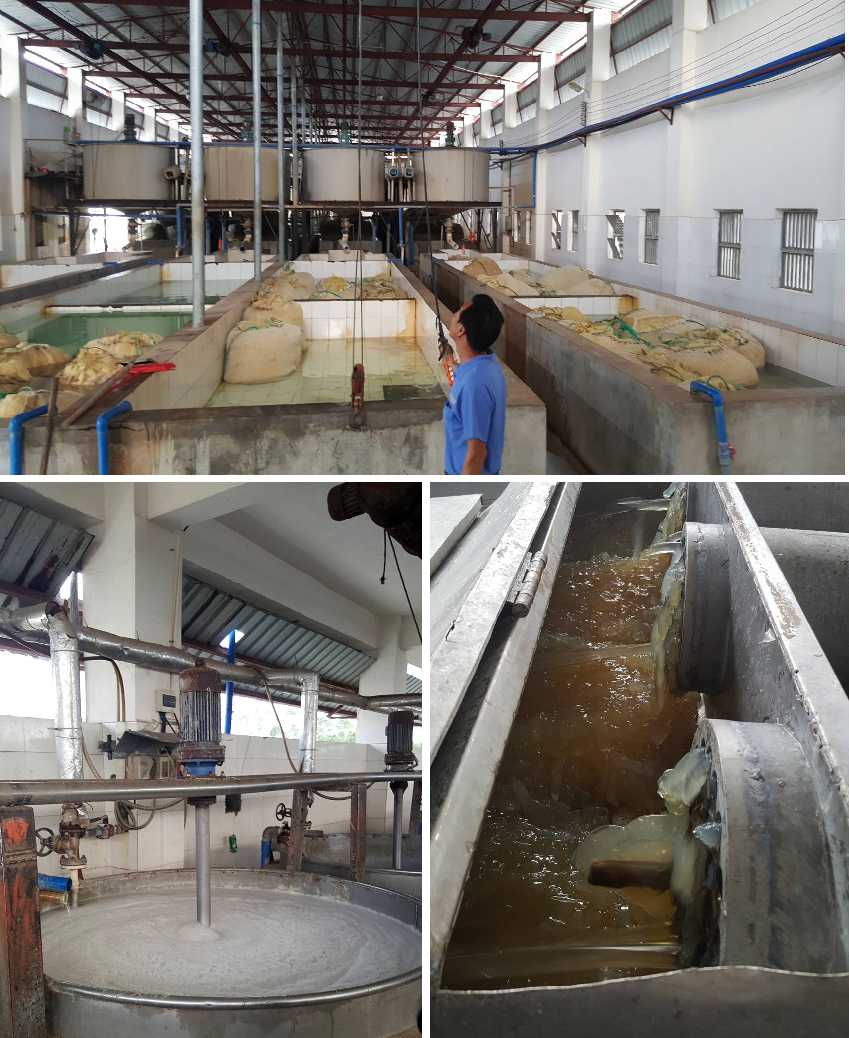 Seaweed gets washed, bleached, boiled, and the resulting gel skimmed off. Photos from Rawewon Sutichavengkul.